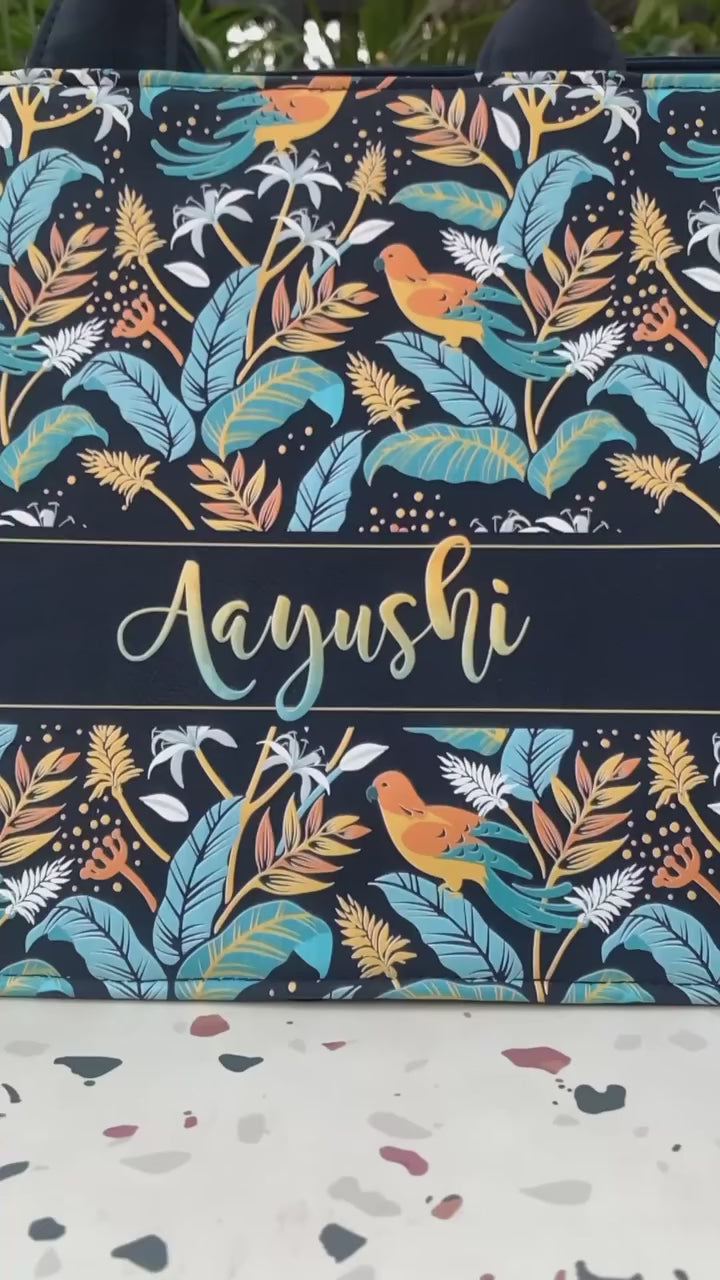 Blue Haven Birds Embossed Customized Tote Bag – Stylish, Spacious, and Customized