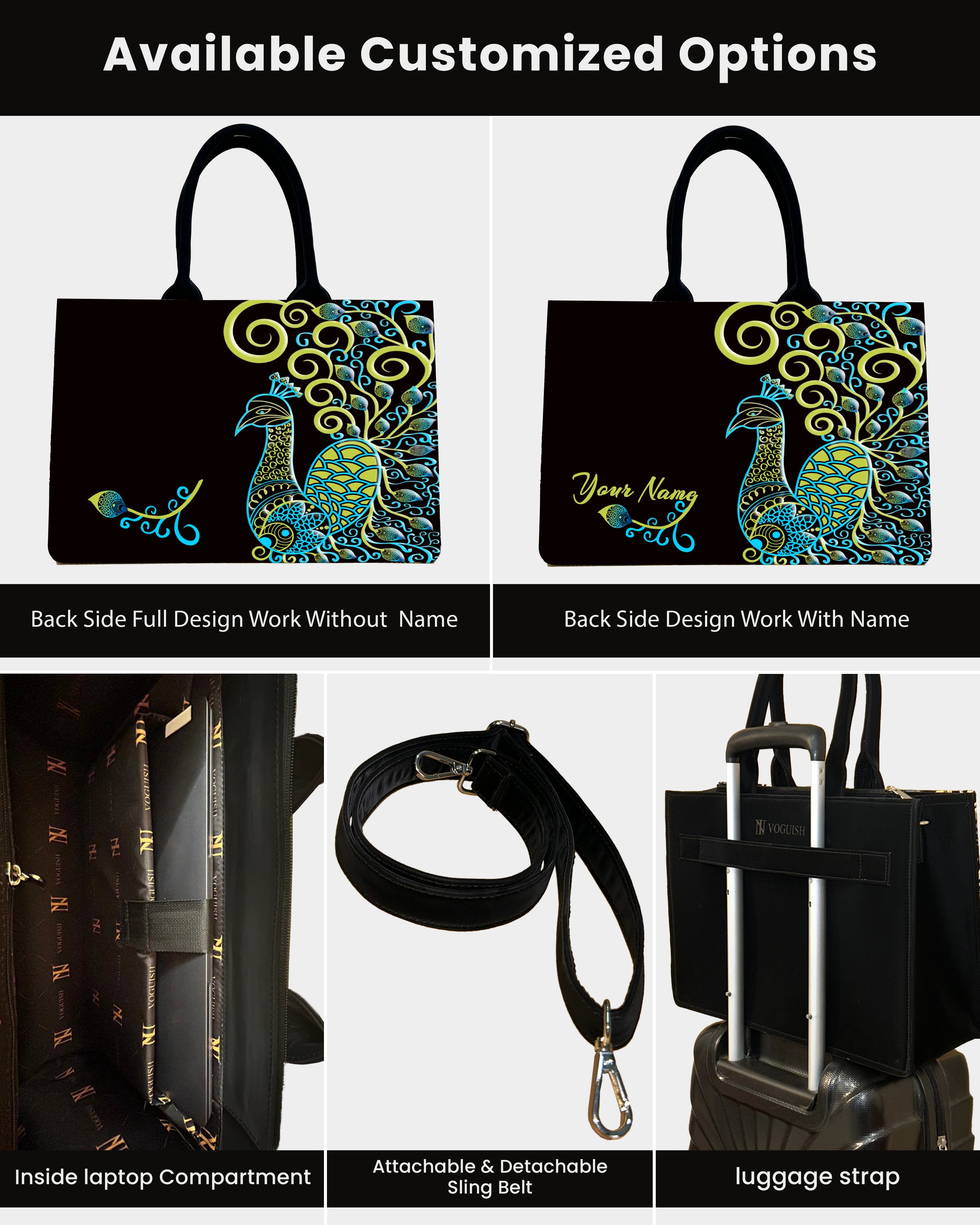Elevate your look with this beautifully designed tote bag, featuring an exquisite mandala peacock motif that showcases artistry and sophistication. Perfect for work, shopping, travel, or casual outings, this bag is the perfect blend of functionality and style.
