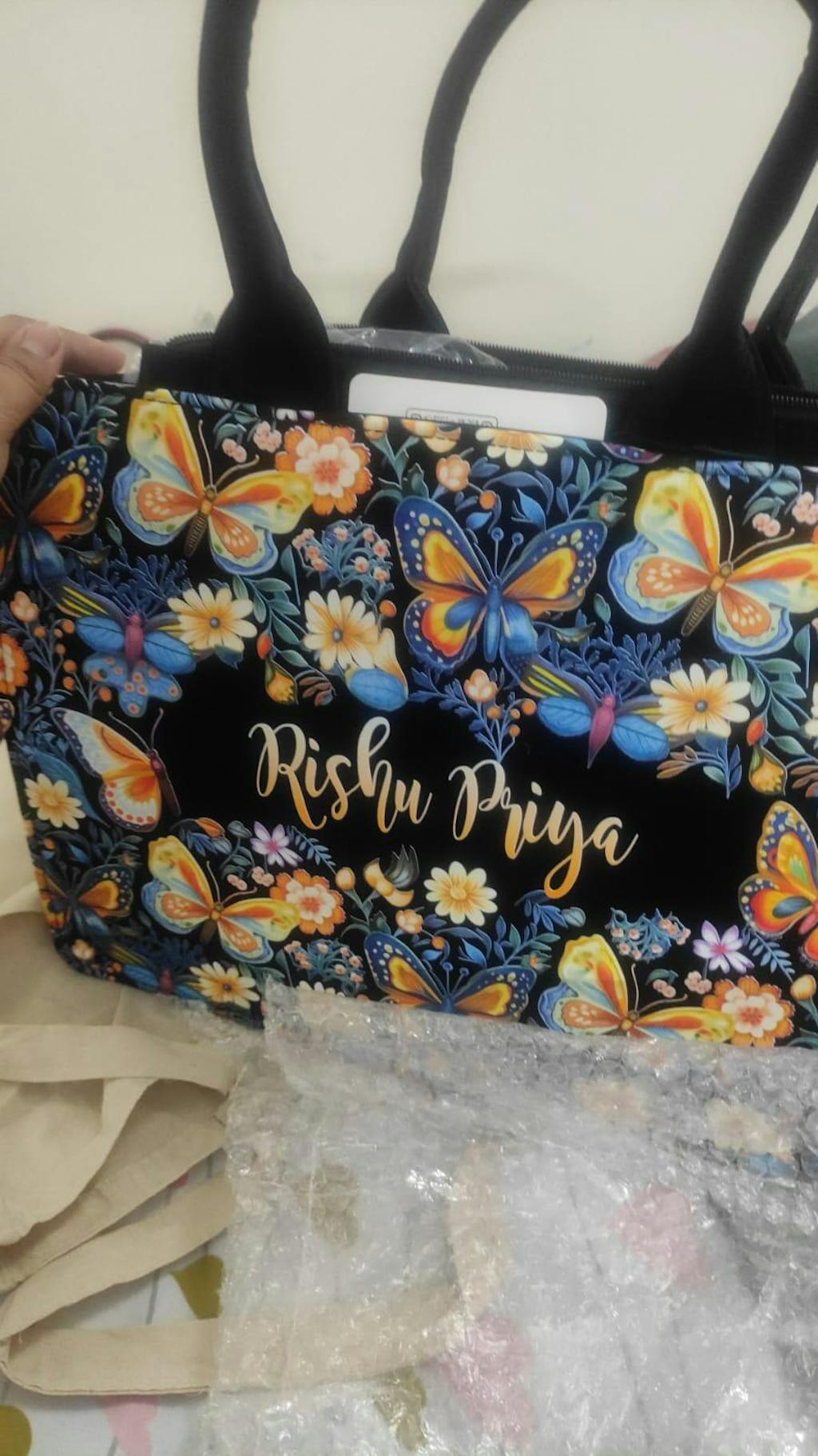 Customized Tote Bag Designed With Blossom Colourfull Butterflies